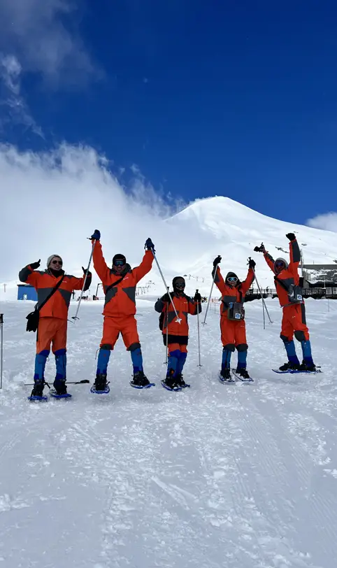 Vive una experiencia de trekking con raquetas en el Volcán Villarrica, ideal para toda la familia.